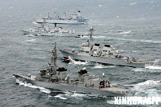 2007年4月16日,日本海上自衛(wèi)隊(duì)和美國、印度海軍的軍艦在日本房總半島附近的太平洋海域進(jìn)行聯(lián)合訓(xùn)練。新華社/法新