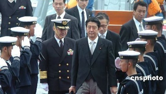 安倍晉三檢閱日本海上自衛(wèi)隊(資料圖)