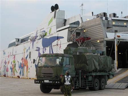 6月6日,最新一批日本陸上自衛(wèi)隊(duì)88式地對(duì)艦導(dǎo)彈運(yùn)抵宮古島市平良港。(來(lái)源:日本新聞網(wǎng))