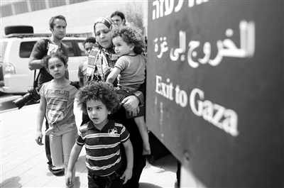 7月13日,幾名巴勒斯坦人撤離加沙地帶后,在埃雷茲口岸等候出關(guān)。新華社發(fā)