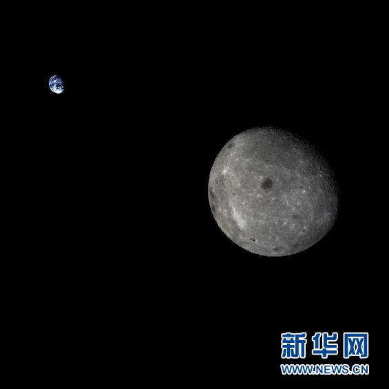 地月合影圖像。記者從國(guó)防科工局獲悉,北京時(shí)間28日19時(shí)40分許,我國(guó)探月工程三期再入返回飛行試驗(yàn)器完成月球近旁轉(zhuǎn)向飛行,離開(kāi)月球引力影響球,進(jìn)入月地轉(zhuǎn)移軌道,預(yù)計(jì)將于11月1日返回地球。新華社發(fā) (國(guó)防科工局提供)"