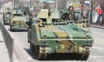 3月2日,參加美韓聯(lián)合軍演的韓國陸軍K-200裝甲車開上街頭