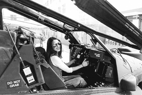 李蒨蓉在網(wǎng)上曬出坐在“阿帕奇”座艙的照片。