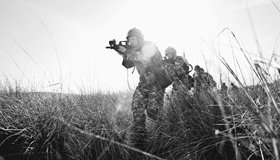 藍(lán)軍哨兵警戒。