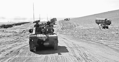 6月2日上午8時(shí),藍(lán)軍部隊(duì)輪式裝甲車輛按照演習(xí)編程和藍(lán)軍指揮部的要求,在空軍和陸軍航空兵的掩護(hù)下,分三路、多批次進(jìn)入演習(xí)的預(yù)定地域。