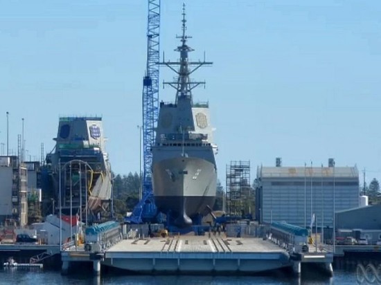 資料圖:澳大利亞新版神盾艦首艦下水