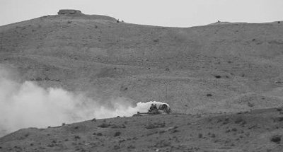 “紅軍”炮兵火力對敵前沿裝甲目標(biāo)實施摧毀。程成攝