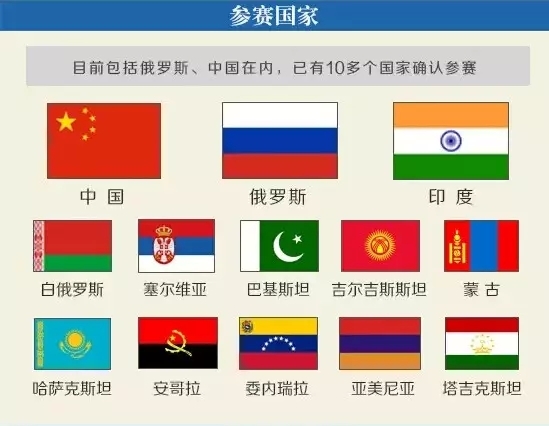 俄羅斯國際軍事比賽始于2013年。尤其是2014年8月舉辦的“坦克兩項”和“航空飛鏢”國際競賽,對提升俄軍訓(xùn)練水平、深化俄軍事外交、擴大俄國際影響都產(chǎn)生了積極作用。在此基礎(chǔ)上,2015年俄羅斯國際軍事比賽又向前邁出了一大步,比賽項目明顯增多,而且在俄10個州同步舉行。目前包括俄羅斯、中國在內(nèi),已有白俄羅斯、印度、巴基斯坦、吉爾吉斯斯坦、蒙古、哈薩克斯坦、安哥拉、委內(nèi)瑞拉、亞美尼亞、塔吉克斯坦、塞爾維亞等10多個國家確認參賽。