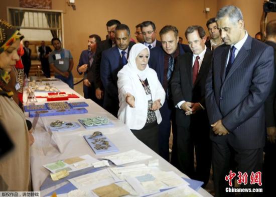資料圖:當(dāng)?shù)貢r間2015年7月15日,伊拉克巴格達,伊拉克國家博物館舉行走私文物歸還儀式,伊拉克旅游部長Adel Shirshab與美國駐伊大使Stuart Jones出席。據(jù)悉,美國在敘利亞對“伊斯蘭國”展開突襲時截獲了這批走私文物。