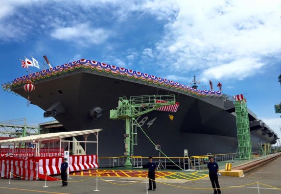 2015年8月27日下午14時,日本海上自衛(wèi)隊最新型準航母DDH-184艦在橫濱船廠正式下水。該艦被命名為“加賀”號。該級別首艦“出云”號已于今年3月25日服役。