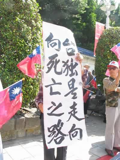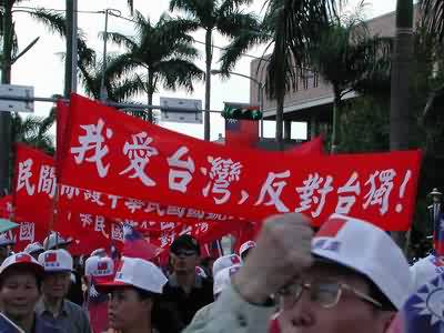 民眾高舉寫(xiě)有“反獨(dú)”字樣的標(biāo)語(yǔ)