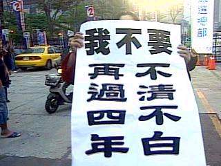 2004年,扁玩奧步贏選舉,遭民眾舉牌抗議。(資料圖)
