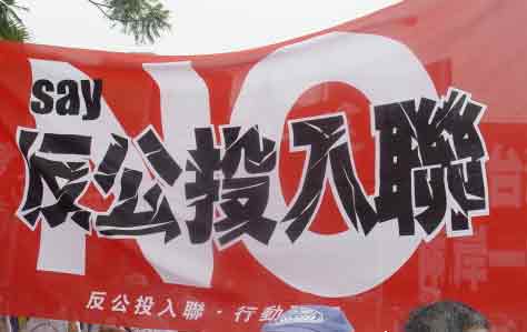 陳水扁操弄“入聯(lián)公投”遭民眾反感。圖為臺灣“反公投入聯(lián)行動聯(lián)盟”打出的巨幅標語。