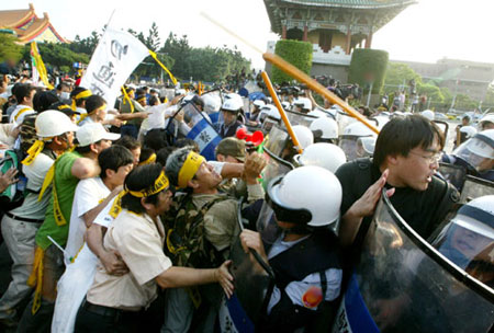 民進(jìn)黨人士在陳云林訪臺(tái)期間“圍城游行”,與警察爆發(fā)多次沖突。