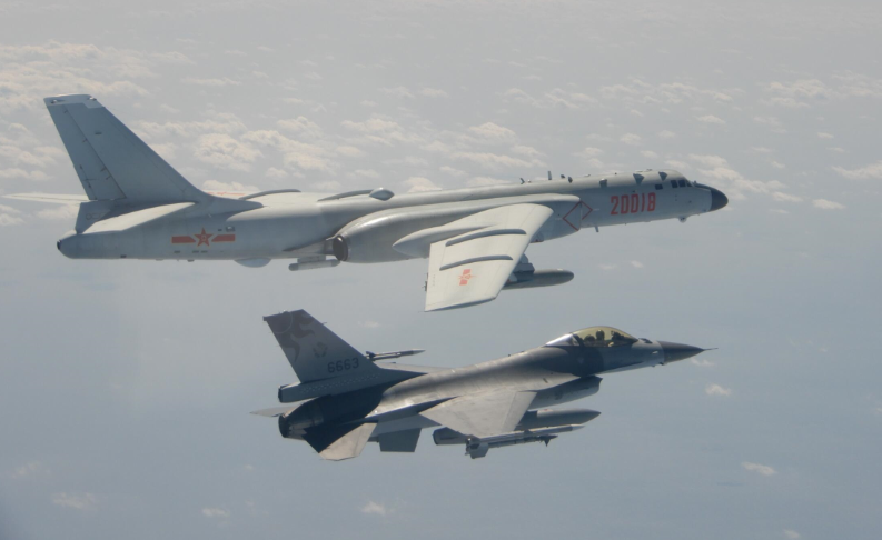 臺(tái)軍公布臺(tái)灣空軍F-16戰(zhàn)機(jī)掛彈攔截監(jiān)視我轟-6K的照片。