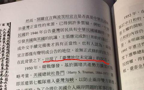 試想,當(dāng)少得只剩幾頁的中國政治史,標(biāo)題竟然是《傳統(tǒng)政治權(quán)威的形塑》;臺灣光復(fù)時(shí)期的標(biāo)題是《威權(quán)體制下的臺灣》,受這種歷史教材熏陶的學(xué)生,會形成什么樣的“中國概念”?不僅如此,在新的歷史課本中,連“臺灣地位未定論”也被提出討論,這將會對臺灣青少年造成什么樣的毒害?