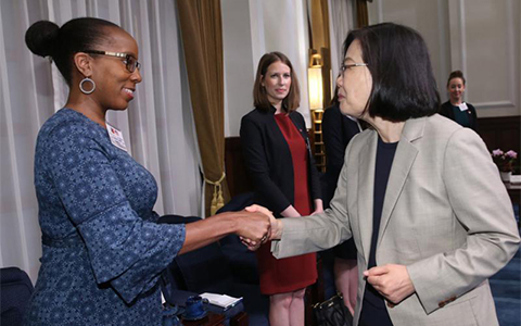 去年4月,蔡英文會見美國智庫“新美國安全中心”成員。(資料圖片來源:網(wǎng)絡)