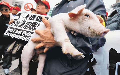 民調(diào)顯示,島內(nèi)有六成民眾反對(duì)肉品使用瘦肉精、含瘦肉精美豬進(jìn)口。(圖片來(lái)源:網(wǎng)絡(luò))