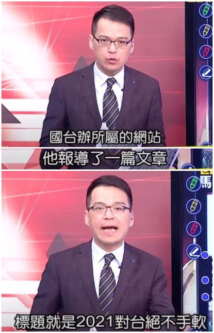 首先,主持人上來就直接改標(biāo)題。把《2021,亮劍“臺(tái)獨(dú)”,決不手軟!》直接簡(jiǎn)化為《2021對(duì)臺(tái)絕不手軟》。字變少了,意思也完全相反,“亮劍”對(duì)象從島內(nèi)一小撮“臺(tái)獨(dú)”勢(shì)力,變成了整個(gè)臺(tái)灣。國防部多次強(qiáng)調(diào),(解放軍在臺(tái)海地區(qū)的相關(guān)演練活動(dòng))針對(duì)的是外部勢(shì)力干涉和一小撮“臺(tái)獨(dú)分裂勢(shì)力”及其分裂行徑。大陸方面同樣多次重申,愿意為和平統(tǒng)一創(chuàng)造廣闊空間,但絕不為“臺(tái)獨(dú)”分裂留任何空間。綠媒試圖把針對(duì)“臺(tái)獨(dú)”的警告之聲,擴(kuò)散到全體臺(tái)灣民眾身上,擺明要拉著全臺(tái)民眾“墊背”。