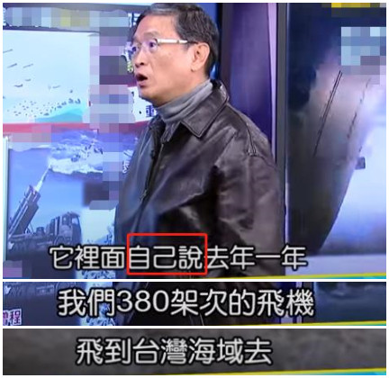 這個(gè)380多架次的數(shù)據(jù),是臺(tái)灣防務(wù)部門算出來、并經(jīng)綠媒報(bào)道的數(shù)字,怎么到了嘉賓口中,變成了大陸方面“自己說”?話里話外,都在影射大陸軍機(jī)活動(dòng),是大陸方面主動(dòng)“挑事”,完全混淆是非。