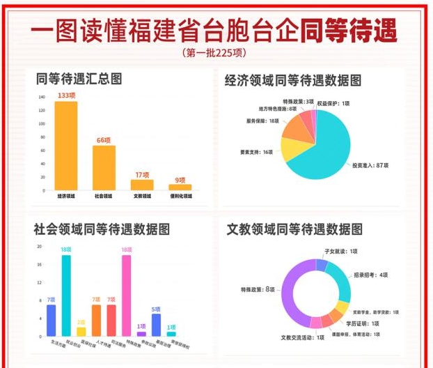 一直以來,大陸始終秉持“兩岸一家親”理念,率先同臺灣同胞分享大陸發(fā)展機(jī)遇,在更大范圍、更寬領(lǐng)域?yàn)榕_胞臺企提供同等待遇。同時(shí),大陸積極推動兩岸交流合作提質(zhì)增效,助力臺胞特別是臺灣青年在大陸追夢、筑夢、圓夢!巴七M(jìn)兩岸關(guān)系和平發(fā)展和祖國統(tǒng)一”是“十四五”規(guī)劃和二〇三五年遠(yuǎn)景目標(biāo)的重要組成部分,其中一項(xiàng)就是要支持福建探索海峽兩岸融合發(fā)展新路。而這份“225條”清單就是福建繼續(xù)率先同臺灣同胞分享發(fā)展機(jī)遇,為在閩臺胞臺企提供更多同等待遇,共建第一家園的有力體現(xiàn)。