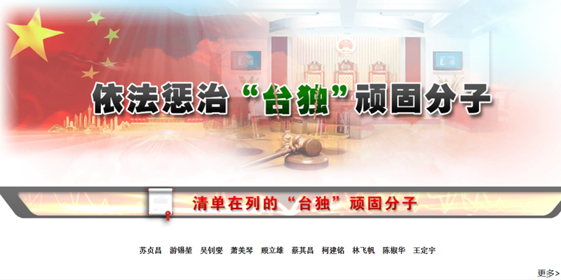 日前,國務(wù)院臺(tái)辦和公安部網(wǎng)站同步推出“依法懲治‘臺(tái)獨(dú)’頑固分子”專欄,引發(fā)島內(nèi)極大關(guān)注。