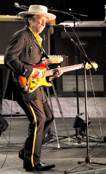 迪倫在演唱會(huì)現(xiàn)場(chǎng)表演(來(lái)源:京華時(shí)報(bào))