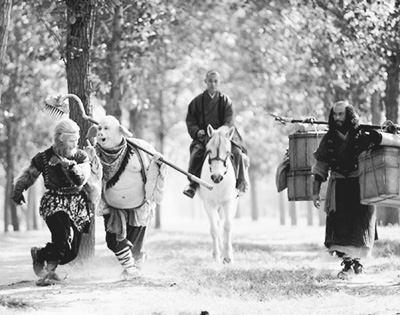 經(jīng)典翻拍是一把雙刃劍。一方面,經(jīng)典起點(diǎn)高,有廣泛的觀眾群;另一方面,觀眾對(duì)經(jīng)典有心理預(yù)期,很多人反對(duì)經(jīng)典翻拍,是擔(dān)憂經(jīng)典被糟蹋。徐克翻拍胡金銓版的電影《新龍門(mén)客棧》大獲成功,證明了“小馬過(guò)河”的道理,關(guān)鍵是要把握深淺。前些年改編西游故事的電影《大話西游》大受歡迎,也是這類作品中的新經(jīng)典?梢(jiàn)只要內(nèi)核對(duì)了,翻拍完全可以在形式上實(shí)現(xiàn)多樣化?傮w來(lái)說(shuō),翻拍有兩種,一種是完全遵從原著,簡(jiǎn)單照搬;一種是原著基礎(chǔ)上的創(chuàng)新改編,新《西游記》無(wú)疑是后者。具體而言,新《西游記》在人物外形設(shè)計(jì)、場(chǎng)景特效、臺(tái)詞對(duì)白等方面突破較大,尤其在特效制作上,盡管與好萊塢相比,難稱完美,但較之老版已有質(zhì)的飛躍,體現(xiàn)出了時(shí)代進(jìn)步下經(jīng)典翻拍的技術(shù)意義。