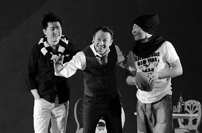 丁志誠(中)扮演的威利一心要把自己的成功夢想灌輸給兩個兒子。新京報記者 郭延冰 攝