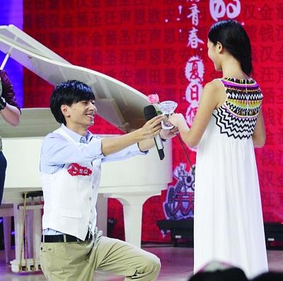 “快男”熱門選手左立曾說,進入10強就向女友熊小玥求婚,昨天他終于兌現(xiàn)諾言,在《天天向上》的錄制現(xiàn)場,單膝跪地向女友成功求婚。左立的誓言感動了在場所有觀眾:“今后無論發(fā)生什么我都會在你身邊,我會變得更加強大,賺更多錢。”(新聞鏈接)