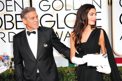 “我是查理”在比弗利 喬治·克魯尼夫婦分別佩戴“我是查理”的徽章。值得一提的是,喬治·克魯尼去年便提前獲得了金球獎終身成就獎。