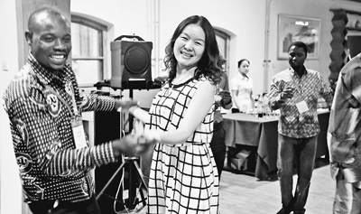 參加培訓班的非洲學員與老師聯(lián)誼。