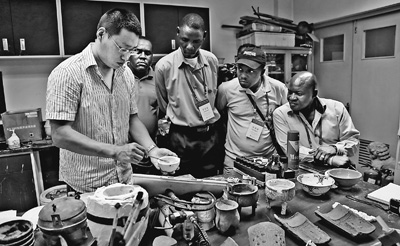 非洲英語國家文物修復人員培訓班的學員參觀北京大學文物修復室。
