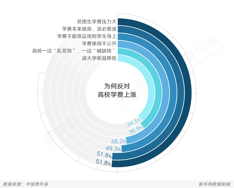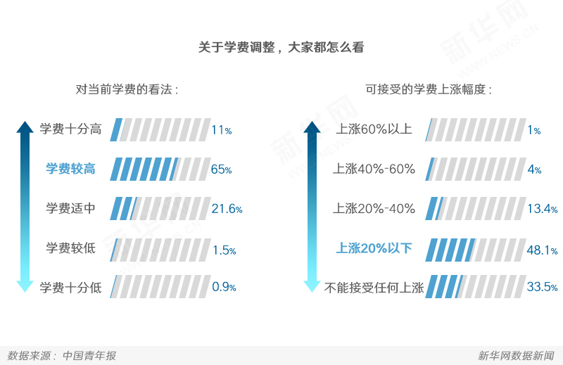相關(guān)調(diào)查顯示,76%的受訪者認(rèn)為當(dāng)前大學(xué)的學(xué)費(fèi)太高,而近半數(shù)的受訪者表示僅能接受學(xué)費(fèi)上漲20%以下。也有受訪者稱,學(xué)費(fèi)上漲可以理解,但上漲的原因、資金流向,一定要向?qū)W生、家長及社會(huì)說明,“上漲的學(xué)費(fèi)要用到學(xué)生身上”。