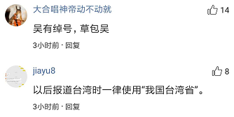 這些網(wǎng)友本著嚴(yán)肅的“自我反省”精神,表示“中國(guó)臺(tái)灣”的說法確實(shí)不夠嚴(yán)謹(jǐn),建議下次統(tǒng)一改為“中華人民共和國(guó)臺(tái)灣省”或“中國(guó)臺(tái)灣省”,或直接稱為“臺(tái)灣省”。