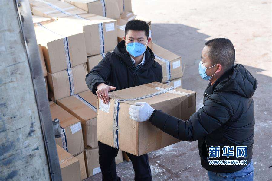 工作人員運(yùn)輸防疫物資。(圖片來源:新華網(wǎng))