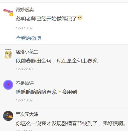 這位網(wǎng)友很適時地提醒我們:春晚快到了,春節(jié)快到了,豬年快過去了……