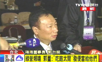 郭臺(tái)銘對(duì)為了選舉而刻意嗆聲的綠營(yíng)人士不以為然。 來(lái)源:臺(tái)灣TVBS電視臺(tái)
