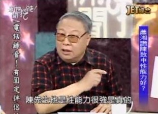 據(jù)環(huán)球網(wǎng)報(bào)道,陳水扁之子陳致中身陷召妓門至今尚未落幕,不過根據(jù)臺(tái)灣壹周刊報(bào)道的“40分鐘召妓論”,反倒成為不少臺(tái)灣民眾茶余飯后的八卦。知名面相專家蕭湘居士在談話節(jié)目中表示,陳致中下巴又肥又長,所以性能力好。另外,對(duì)于年底選舉,居士也斷定他會(huì)“當(dāng)選”。