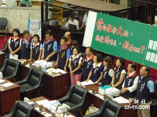 國民黨議會(huì)黨團(tuán)上午甲級(jí)動(dòng)員,除召開記者會(huì)外,也在議會(huì)聯(lián)合總質(zhì)詢,指高雄市長陳菊“防災(zāi)無心、救災(zāi)不力、災(zāi)后卸責(zé)”、“當(dāng)雨狂襲大地、市長你在哪里?”場外還有人對(duì)國民黨團(tuán)嗆聲說“不要再作秀了”,遭警衛(wèi)“請(qǐng)”出議會(huì)外,高市府、會(huì)為水災(zāi)攻防用盡全力。