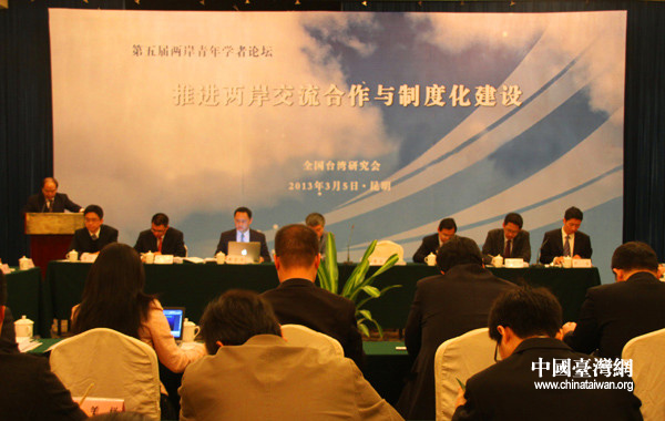 中國(guó)臺(tái)灣網(wǎng)3月5日昆明消息 今天上午,由全國(guó)臺(tái)灣研究會(huì)主辦的“第五屆兩岸青年學(xué)者論壇”在云南省昆明市召開(kāi)。來(lái)自海峽兩岸的40余位青年學(xué)者,以學(xué)術(shù)的角度、民間的角度,圍繞“推進(jìn)兩岸交流合作與制度化建設(shè)”的會(huì)議主題展開(kāi)了積極探討。全國(guó)臺(tái)研會(huì)執(zhí)行副會(huì)長(zhǎng)兼秘書(shū)長(zhǎng)周志懷致辭時(shí)表示:制度化的建設(shè)過(guò)程是一個(gè)不斷發(fā)展、豐富與完善的過(guò)程,應(yīng)該倡導(dǎo)由兩岸紅、藍(lán)、綠三方共同構(gòu)建;為了兩岸人民能夠共享制度化建設(shè)的紅利,我們必須執(zhí)著的追求與探索。