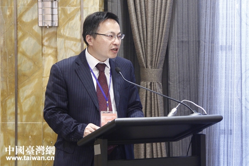 上海臺灣研究所常務副所長倪永杰在研討會上進行主題發(fā)言。(中國臺灣網(wǎng) 張潔 攝)
