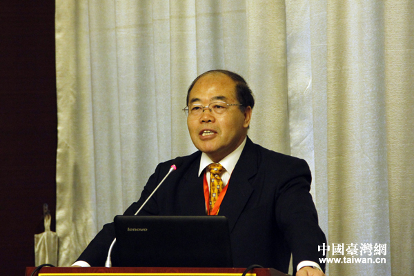 全國臺灣研究會執(zhí)行副會長兼秘書長周志懷為第七屆兩岸青年學(xué)者論壇致開幕辭。(中國臺灣網(wǎng)記者 李杰 攝)