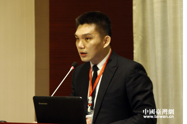 臺灣大學國家發(fā)展研究所的高宇成博士在論壇上作主題發(fā)言。(中國臺灣網(wǎng)記者 李杰 攝)