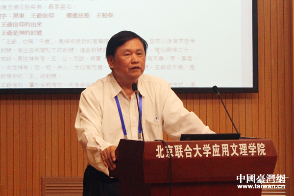 臺(tái)灣臺(tái)中科技大學(xué)應(yīng)用中文系教授蕭登福圍繞“臺(tái)灣屏東地區(qū)的民間宗教信仰”進(jìn)行主題發(fā)言。(中國(guó)臺(tái)灣網(wǎng) 張潔 攝)