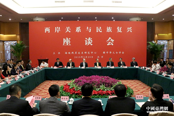 海峽兩岸關(guān)系研究中心與臺灣新中華兒女學(xué)會今日在北京舉行“兩岸關(guān)系與民族復(fù)興”座談會。(中國臺灣網(wǎng) 普燕 攝)