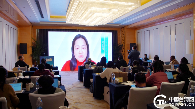 天津大學(xué)臺灣研究所副所長、中華兩岸新時代交流協(xié)會學(xué)術(shù)研究中心主任何慧俐通過視頻方式進(jìn)行主旨演講。(中國臺灣網(wǎng) 符海川 攝)