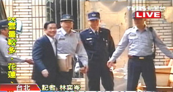 3月19日是319槍擊案屆滿6年的日子,同時臺灣“高院”審理的陳水扁案也在當(dāng)天迎來重頭戲:陳水扁家人首度共同應(yīng)訊。圖為陳水扁進(jìn)入法院。(圖片來源:臺灣TVBS電視臺)