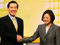 臺(tái)灣地區(qū)領(lǐng)導(dǎo)人馬英九與民進(jìn)黨主席蔡英文25日在臺(tái)灣公共電視臺(tái)舉辦“雙英辯論”。在長達(dá)2個(gè)半小時(shí)的時(shí)間里中,雙方圍繞ECFA議題展開辯論。馬英九步步為營,民調(diào)明顯會(huì)升高,而蔡英文則表情嚴(yán)肅僵硬,幾度斷話,在民進(jìn)黨內(nèi)及一般民眾心中,受到很大的質(zhì)疑。 |