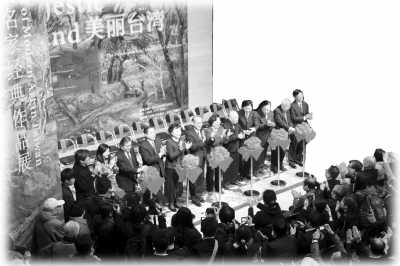 蘇進強(右七)出席“美麗臺灣”畫展開幕式。本報記者 任成琦攝